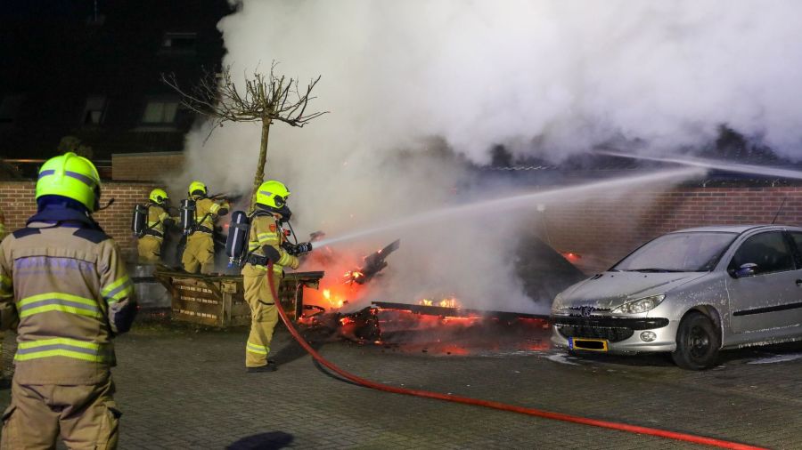 Aan de Dorpsstraat in Lunteren heeft in de nacht van maandag 9 op dinsdag 10 februari een uitslaande brand een houten berging verwoest.