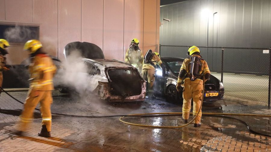Aan de Bankstraat in Ede heeft donderdagavond een brand gewoed bij een bedrijf. Twee geparkeerde auto’s stonden in brand. De politie vermoedt brandstichting.