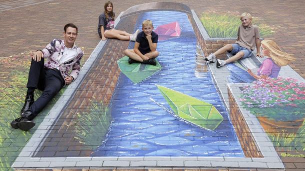 Na het succes van de vorige straatschildering uit 2022, met de Van Kreelpoort, een schaapje en de omliggende natuur van Veenendaal, heeft streetart-painter Rianne te Kaat een nieuw kunstwerk aangebracht op het Kees Stipplein.