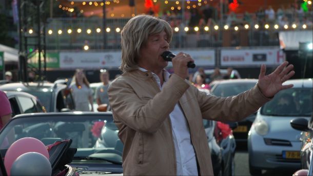 Martin Morero zet voor aanvang Gooische Vrouwen drive-in filmavond Heideweek op zijn kop