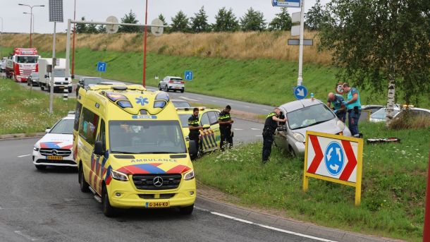 Op de Rondweg-Oost in Veenendaal is vrijdagmiddag rond 13 uur een auto op het midden van een rotonde terecht gekomen. De bestuurder is na een eerste behandeling in de ambulance naar het ziekenhuis gebracht.