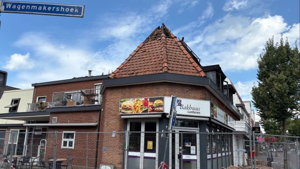 De schade van de zeer grote brand van zaterdagavond aan de Dorpsstraat in Lunteren is de volgende dag goed zichtbaar. Boven de snackbar Bakhuus en de telecomwinkel zitten 5 a 6 appartementen die voorlopig, of misschien wel helemaal, onbewoonbaar zijn.
