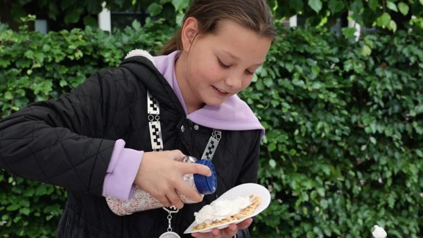 De kinderburgemeester van Renswoude, Fenna van den Brandhof, heeft deze week verse wafels gebakken bij het gemeentehuis. Ze haalde daarmee geld op voor stichting Bliss to Shine.