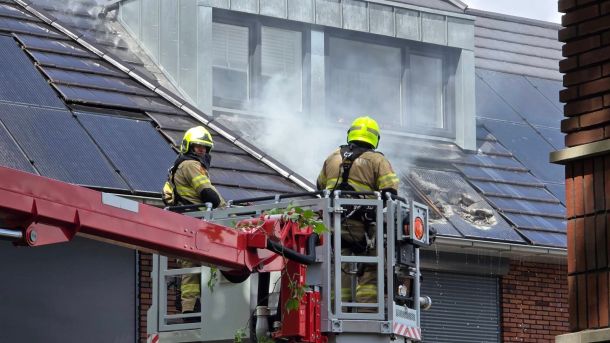 Aan de Hendrik van Poelwijcklaan in Bennekom woedde donderdagmiddag een flinke brand in het dak van een huis. Het vuur bleek in de zonnepanelen te zitten.