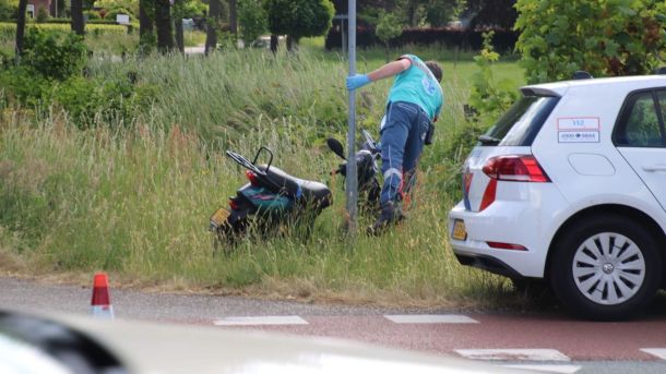 Op de kruising van de Lage Valkseweg met de Walhuisweg in Lunteren zijn dinsdagochtend rond 08:00 uur een personenauto en een scooterrijder op elkaar gebotst.