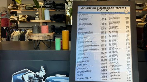 In de etalage van No48 Eijgenraam Mannenmode in Bennekom kun je de komende tijd de lijsten bekijken met slachtoffers van de Tweede Wereldoorlog die in het dorp vielen. Daarnaast staan nog het hele jaar op de Bennekomse begraafplaats kleine bordjes bij de nu bekende oorlogsgraven.