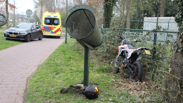 Een bestuurder van een schakelbrommer is dinsdag aan het eind van de middag gewond geraakt bij een ongeval. De jongeman reed te hard op het fietspad op de Eikenlaan en verloor de macht over het stuur.