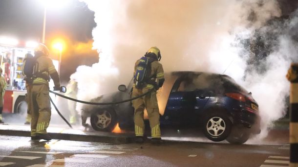 Auto gaat in vlammen op na aanrijding met verkeerslicht Veenendaal