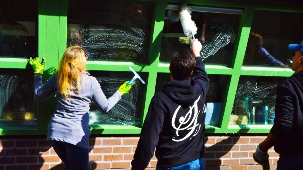 De Momo Theaterwerkplaats in Ederveen was vrijdag het bruisende middelpunt voor de NL doet-dag. Naast veel vrijwilligers stak ook het Edese college de handen uit de mouwen.