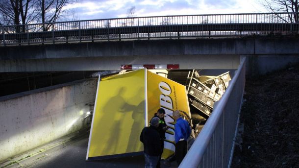 Enorme ravage door bestelbusje dat zich vastrijdt onder brug in Veens Boveneind