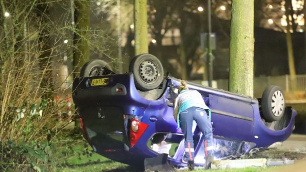 Auto belandt in Veenendaal op zijn kop: inzittenden vluchten