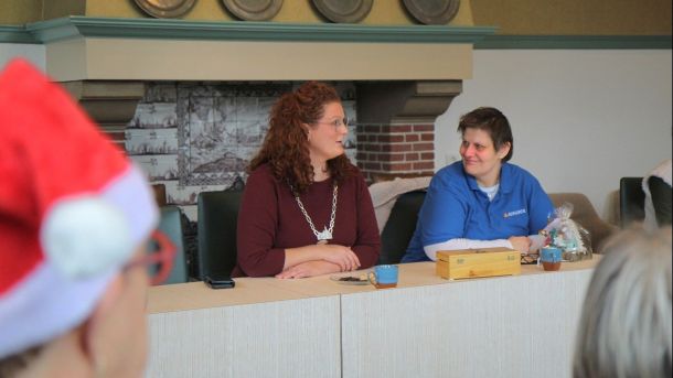 De medewerkers van zorgorganisatie Reinaarde uit Woudenberg kregen hun kerspakket woensdag persoonlijk overhandigd van burgemeester Jansen. Het gebeurde op het Woudenbergse gemeentehuis.