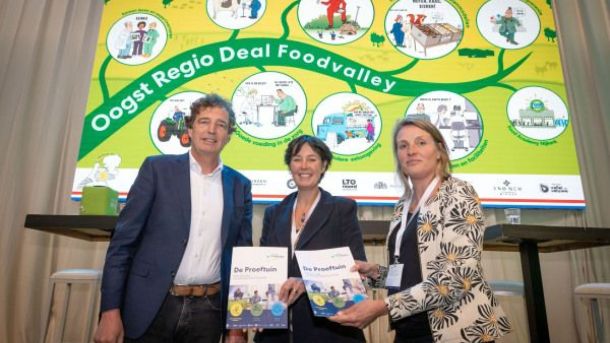 Op 7 november ontvingen Natalie Burgers (ministerie VRO) en Marieke Mossink (ministerie LVVN) uit handen van René Verhulst, voorzitter Regio Foodvalley, het tijdschrift ‘De Proeftuin’. De verhalen in het tijdschrift laten zien wat de Regio Deal Foodvalley concreet voor de regio heeft opgeleverd. De overhandiging vond plaats tijdens het feestelijke Regio Deal Foodvalley Event in de Mauritskazerne in Ede.