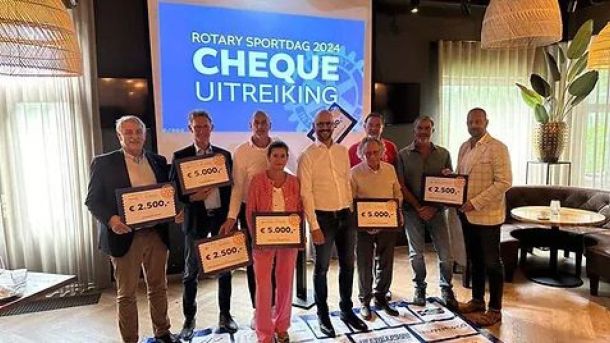 De jaarlijkse sportdag van Rotary Veenendaal heeft 30.000 opgeleverd voor goede doelen. Dat maakte de club dinsdag bekend tijdens een feestelijke bijeenkomst waar de cheques werden uitgereikt.