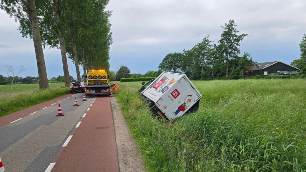 Bezorgwagen belandt in sloot na uitwijkmanoeuvre
