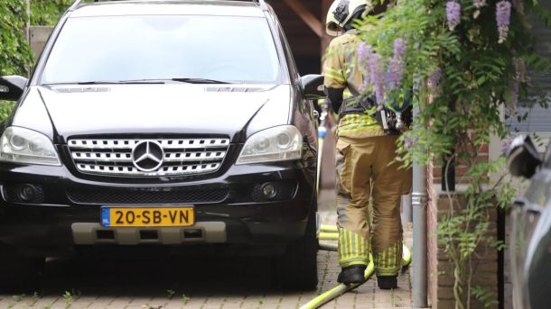 Een elektrische fiets is maandagmiddag in brand gevlogen onder een overkapping bij een woning aan de Haarweg in Overberg.