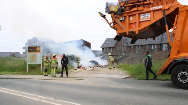 Brand in vrachtwagen met oud papier
