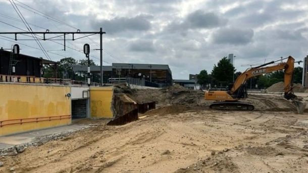 De graafwerkzaamheden voor de tunnelbaan op het Noordplein bij het oude station Ede-Wageningen zijn inmiddels grotendeels klaar.