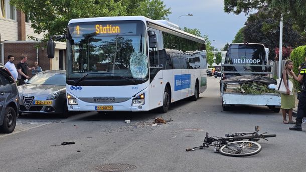 Op de kruising Katenhorst met de Lindenhorst in Ede werd dinsdagavond een fietser geschept door een lijnbus. Dat had flinke schade tot gevolg.