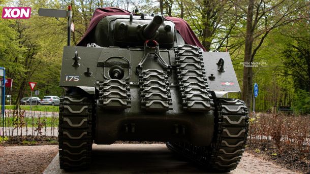 In de stromende regen vond vanmiddag, op de 79ste dag van de bevrijding van Ede, na de herplaatsing van dinsdag de onthulling plaats van de Shermantank aan de Generaal Hackettlaan.