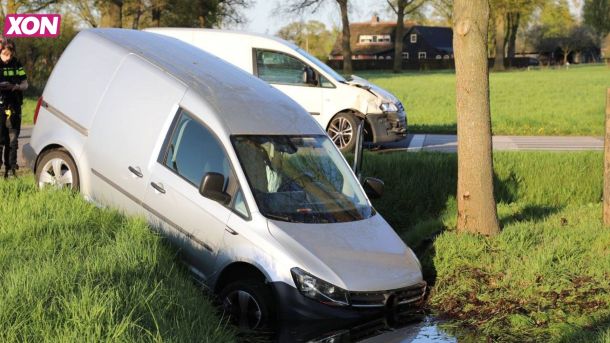 Bestelwagen belandt in sloot na botsing in Lunteren