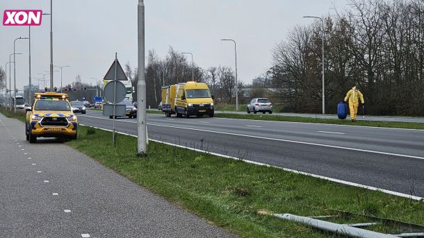 Ziekenhuisafval valt van voertuig en belandt op de weg