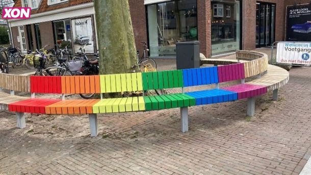 Heel bewust koos de gemeente Ede er eerder dit jaar voor een ronde bank in het centrum over te verven in de kleuren van de regenboog.