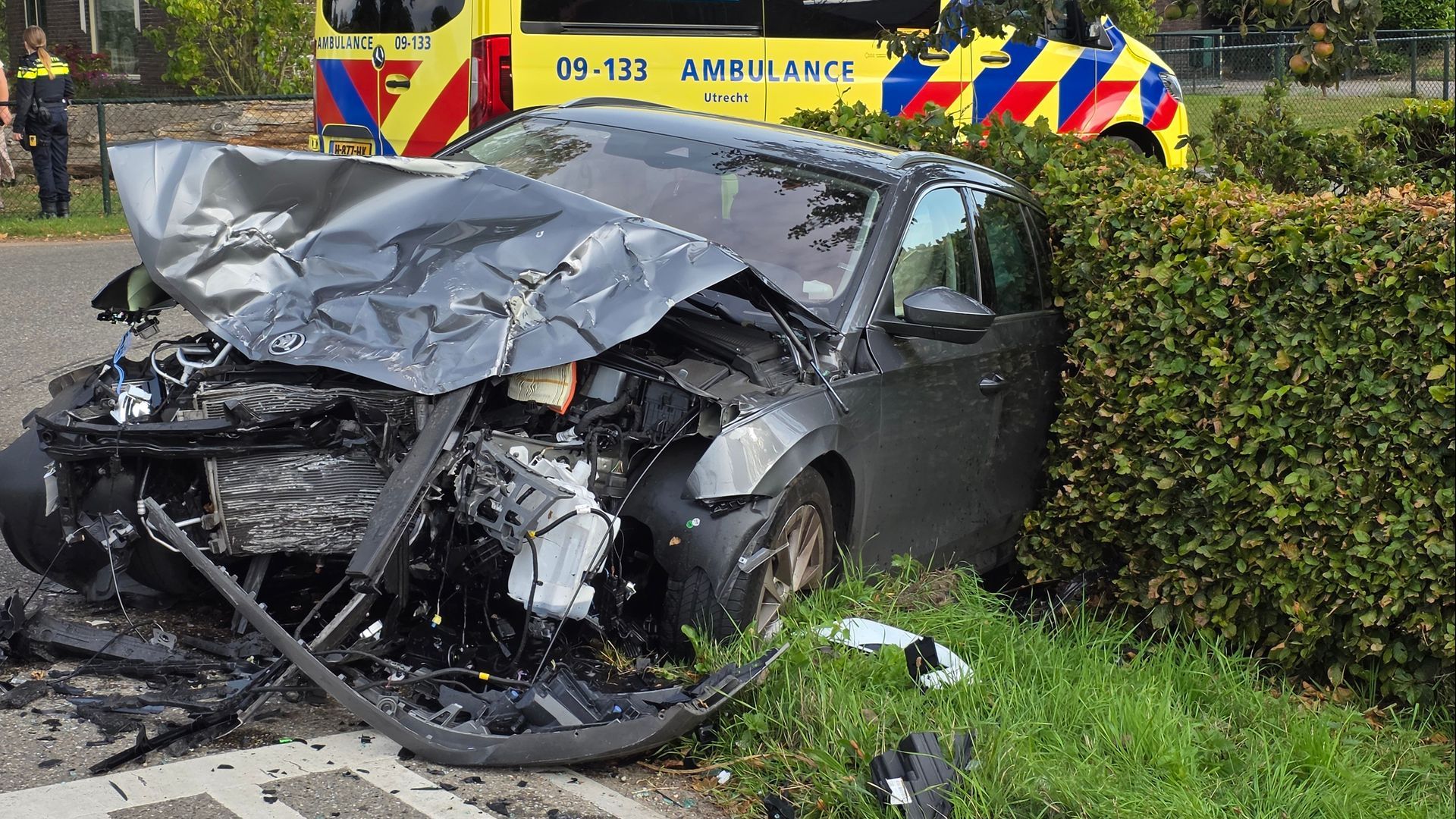Een van de auto’s belandde in een droge sloot, de andere bij mensen in de voortuin. Beide voertuigen liepen forse schade op en worden afgesleept door een berger. Een van de bestuurders wordt in de ambulance nagekeken maar of deze ook mee moest naar het ziekenhuis is niet duidelijk.