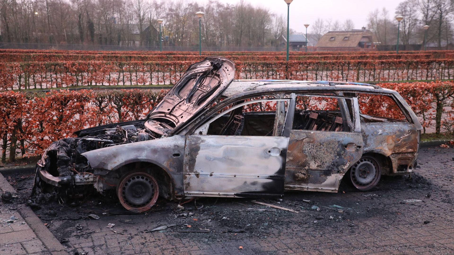 Van de auto met een buitenlands kenteken bleef weinig over.