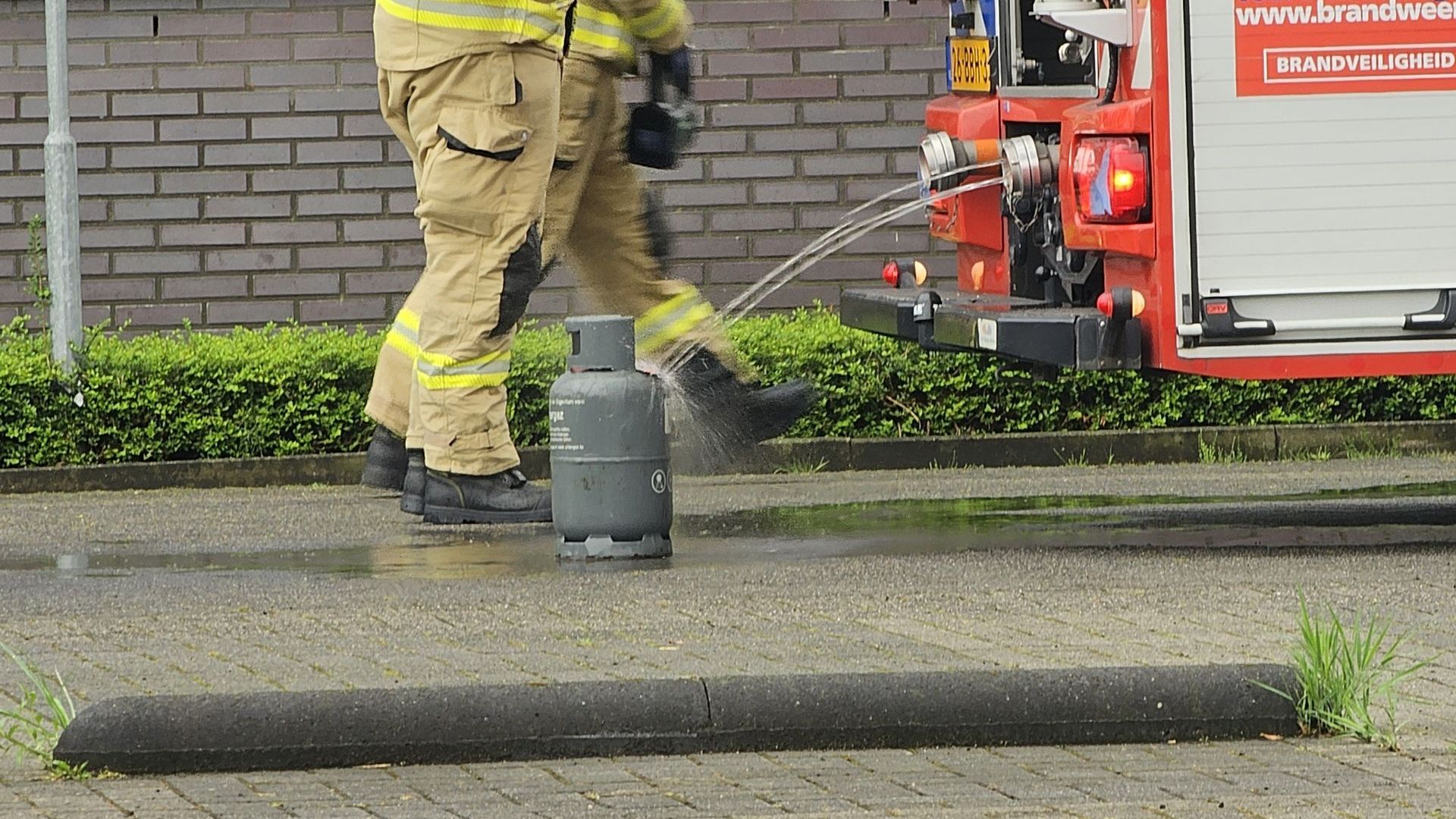 De brandweer heeft de gasfles gekoeld. Voor zover bekend is niemand gewond geraakt.