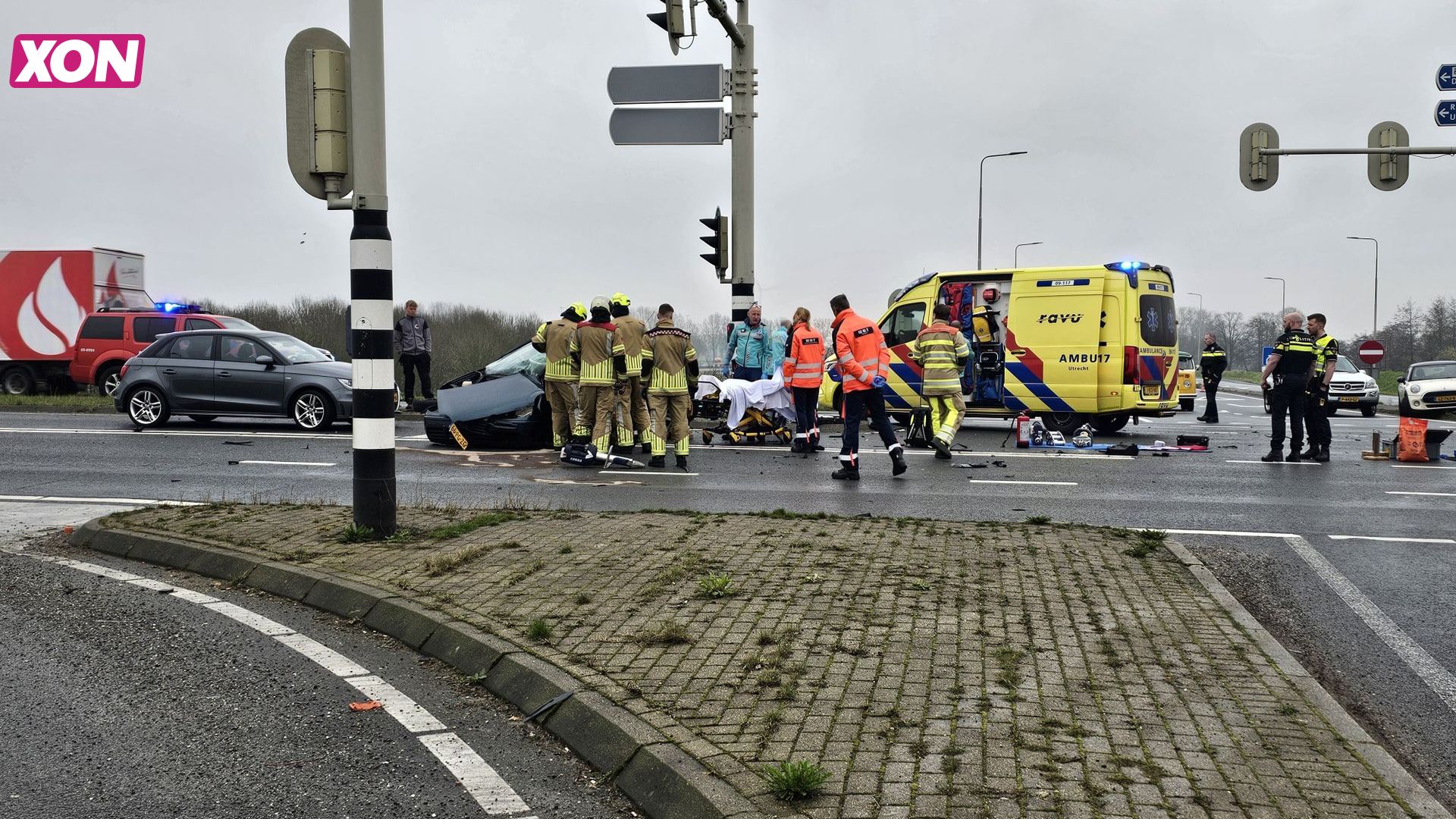De brandweer heeft de bestuurder bevrijd. Het traumateam dat met de helikopter was ingevlogen, ondersteunde het ambulancepersoneel bij de behandeling van het slachtoffer. De ernst van de verwondingen is niet bekend.