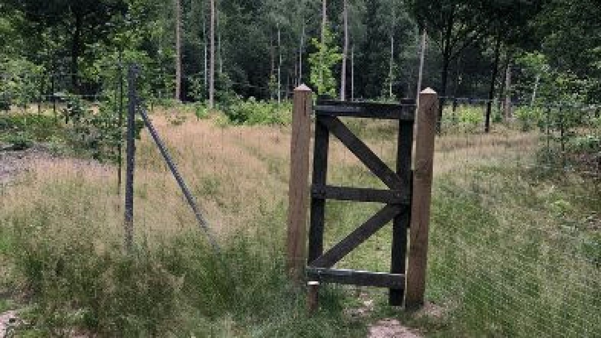 Via een klaphek kun je toch door het raster in het Luntersche Buurtbos