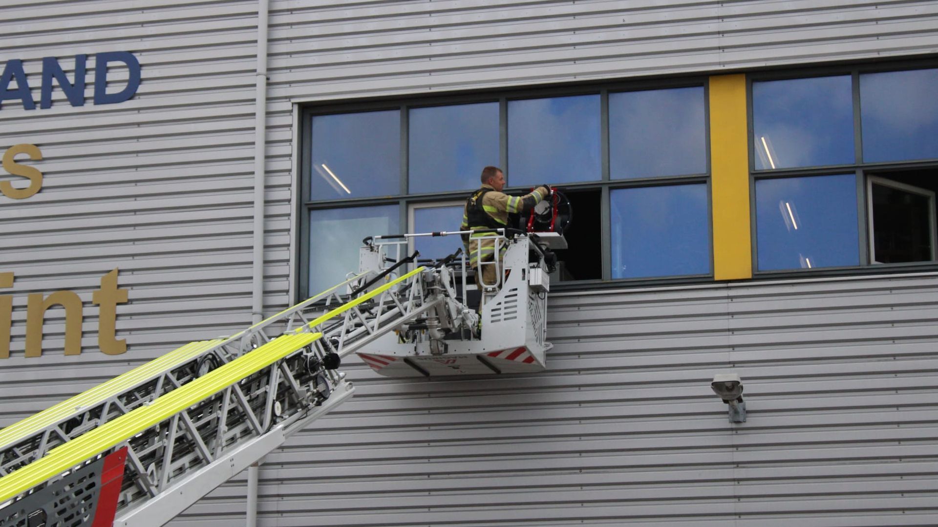 Het kantoorgedeelte boven de hal vulde zich met rook. De brandweer ging naar binnen om de brand te bestrijden. Daarna wordt met een overdrukventilator de hele kantoorruimte geventileerd, zodat het weer veilig is voor de medewerkers. Wat er precies in de brand stond is niet bekend.