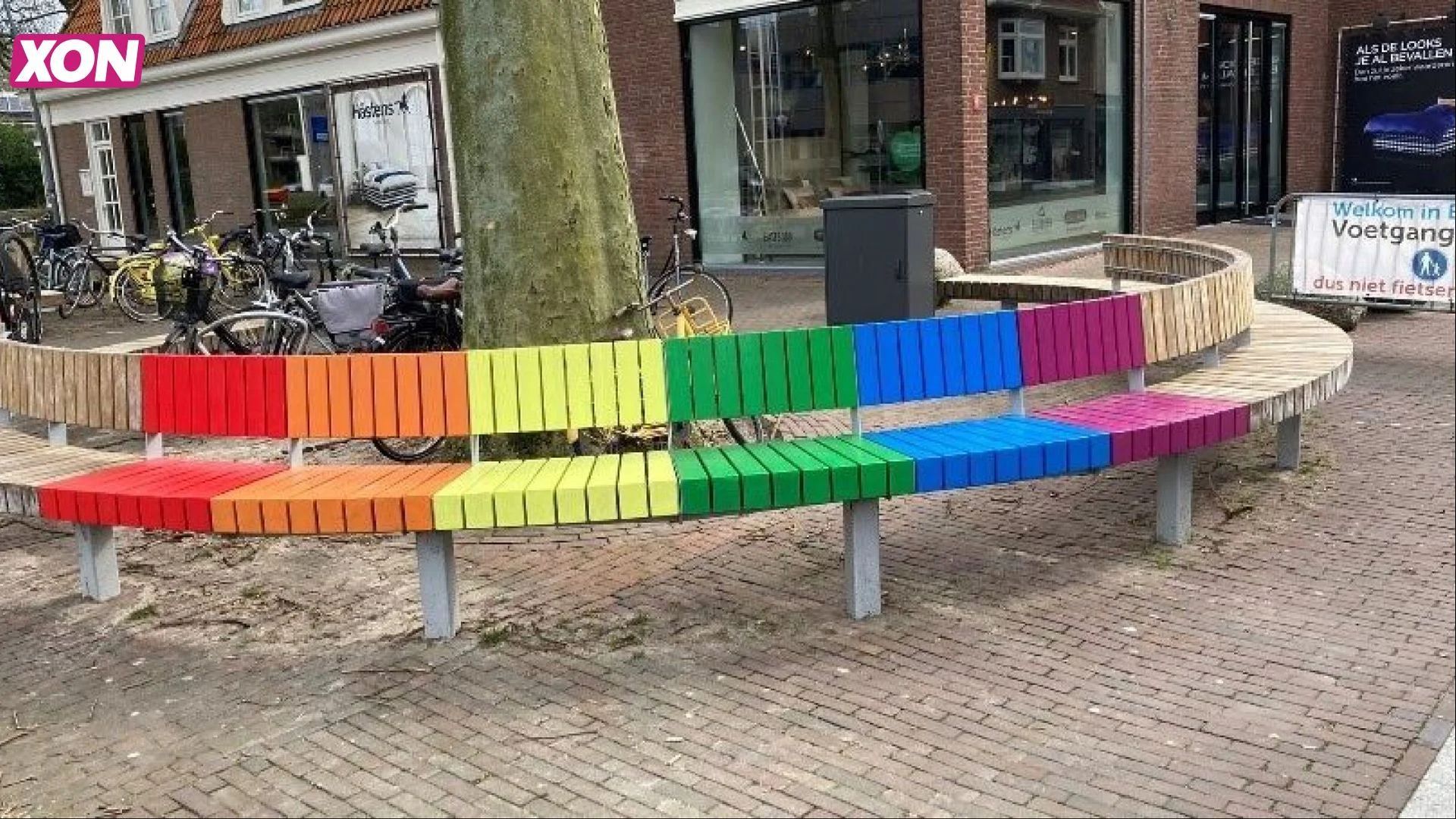 De regenboogbank in het centrum van Ede
