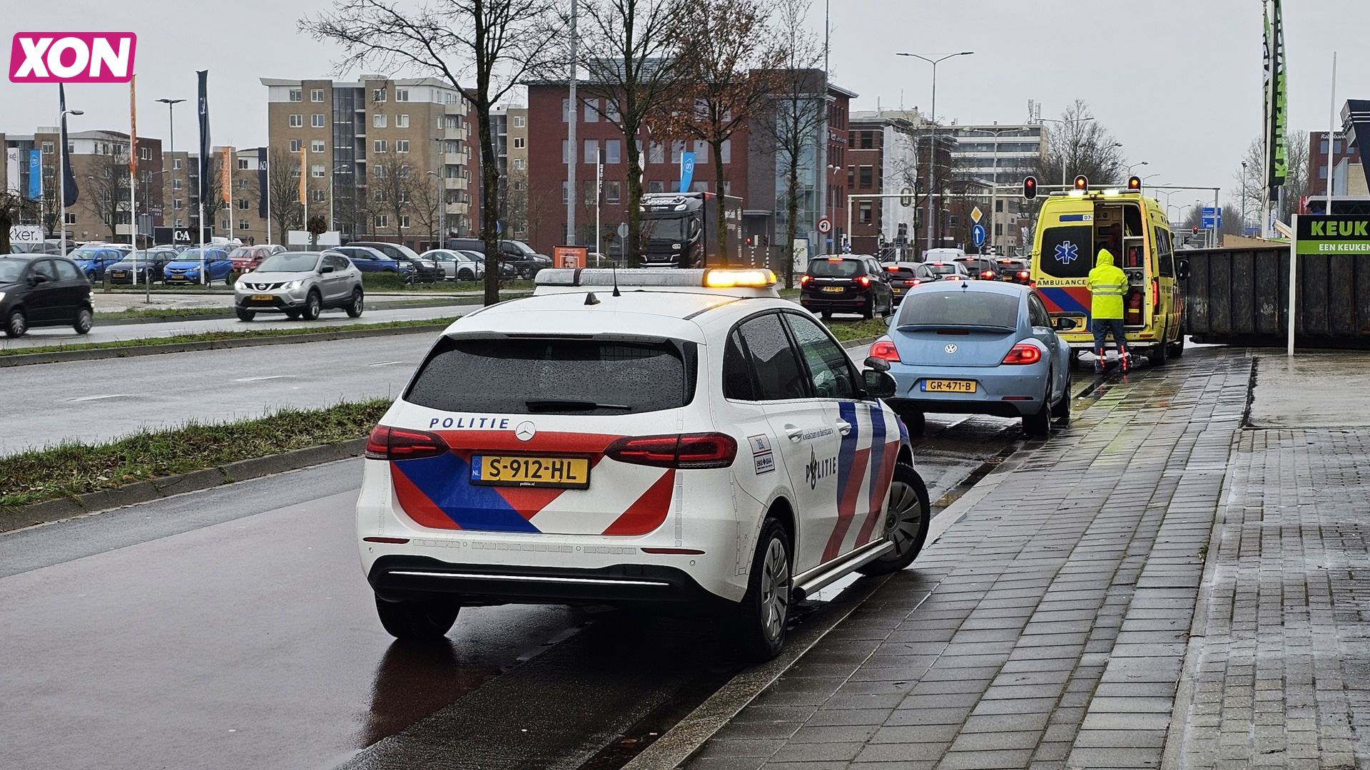 Een personenwagen reed langs een fietser en tikte hierbij met de spiegel de fietser aan. De fietser kwam hierbij ten val. Het slachtoffer is gecontroleerd in de ambulance. De fietser is uiteindelijk voor verdere controle vervoerd naar het ziekenhuis.