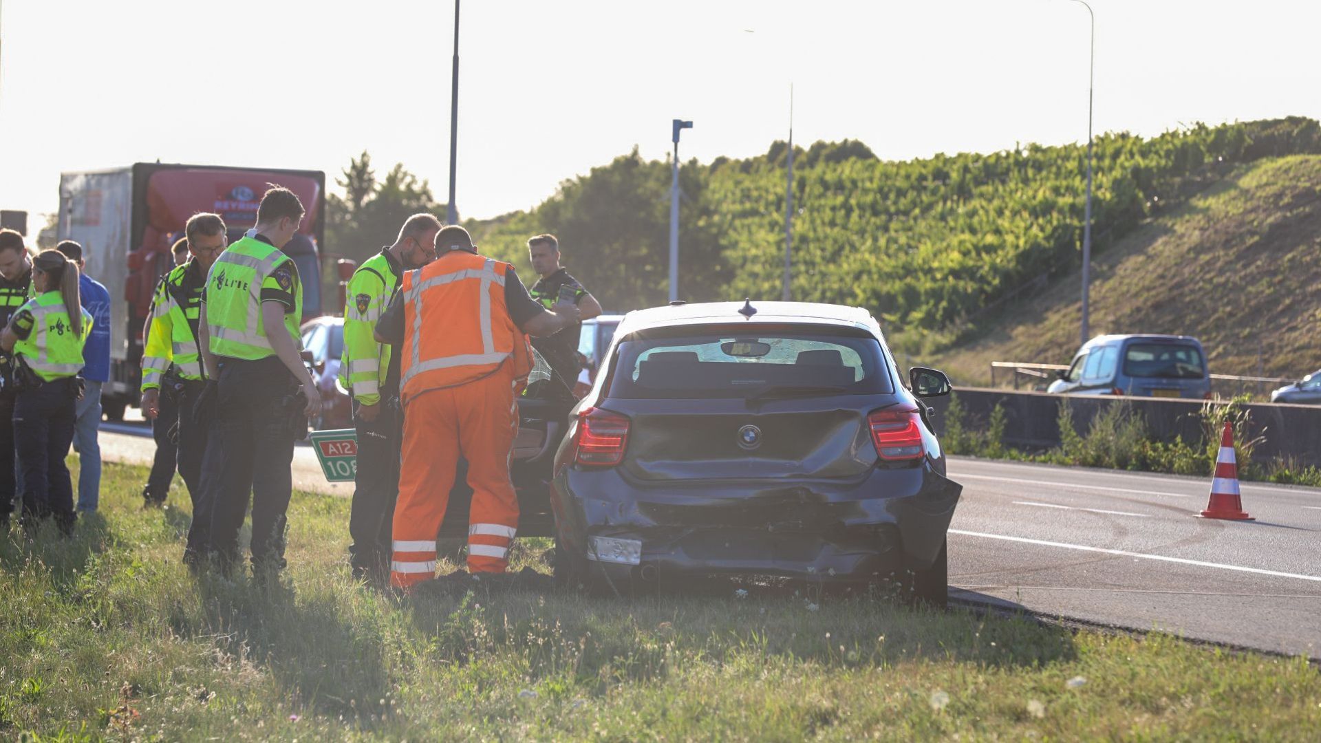 Door de aanrijding ontstond veel vertraging en schade. Een auto belandde op rijstrook 1 en de tweede auto kwam in de buitenberm terecht. Uiteindelijk raakte er niemand gewond. Beide auto’s worden afgesleept.