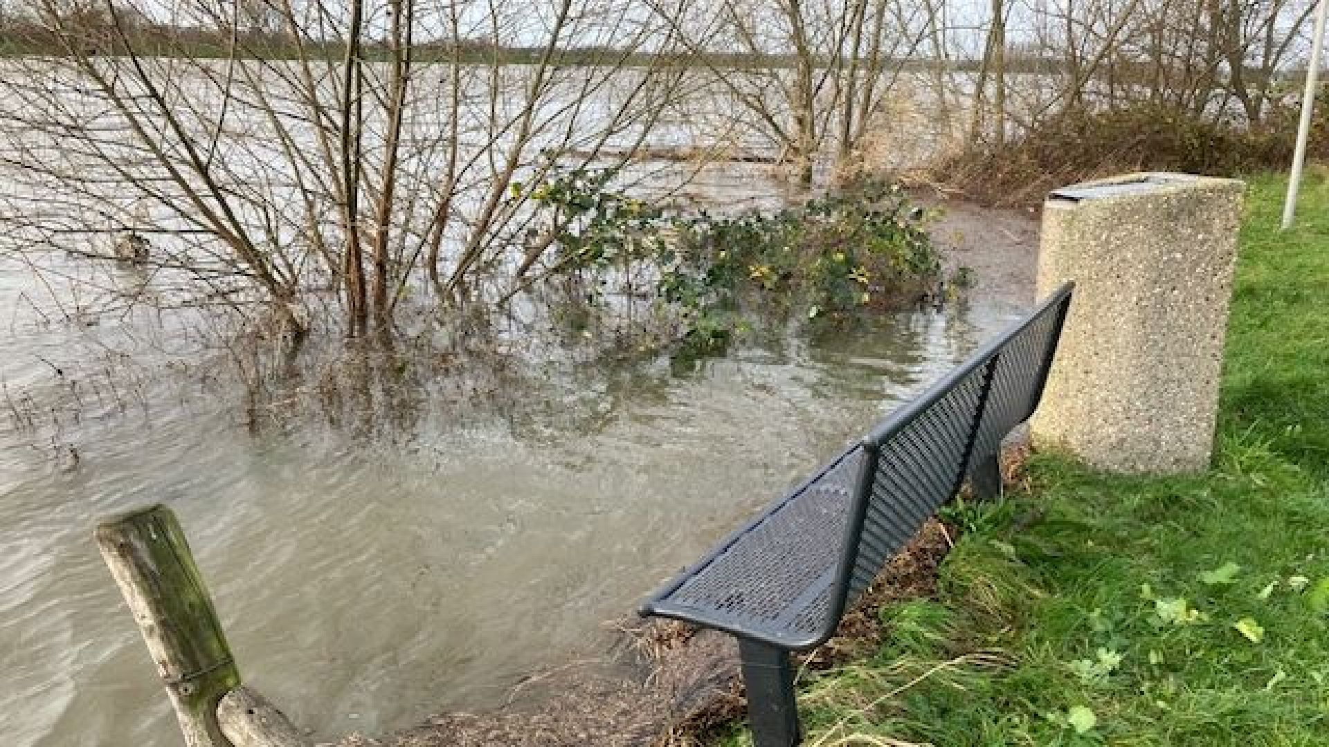 De passantenhaven staat onder water, en ook de fietsenstalling bij Moeke aan de oever van de Nederrijn houdt het niet droog. De aangemeerde binnenvaartschapen kunnen alleen via een verlengde centraal aangelegde loopplank het schip af, of moeten met een bijbootje de wal op. Vooralsnog is er geen gevaar, al zijn er dus wel wat ongemakken.