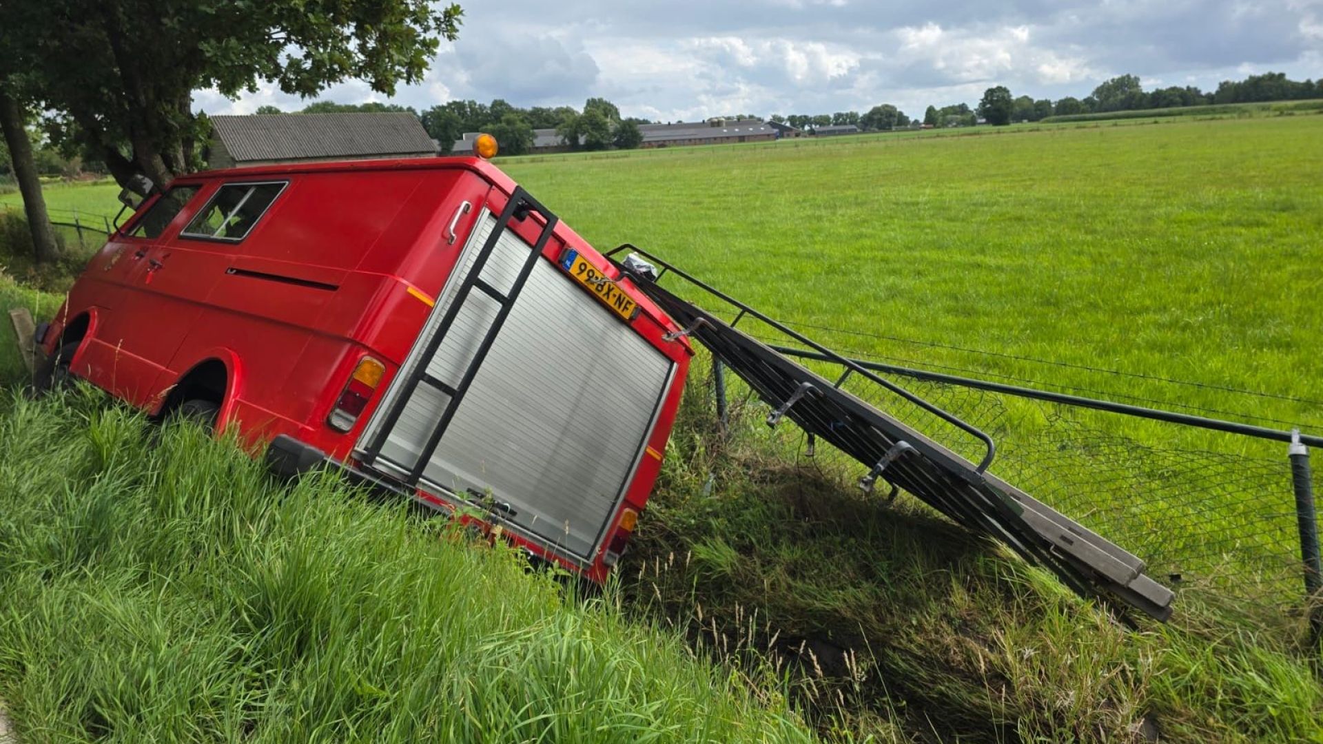 De bestuurder van de oude Volkswagen moest naar eigen zeggen uitwijken voor een jonge bestuurder van een trekker met aanhanger. Niemand raakte bij het ongeval gewond. De politie is ter plaatse om te assisteren bij het ongeval. Beide partijen verklaren dat ze op hun eigen weghelft reden.