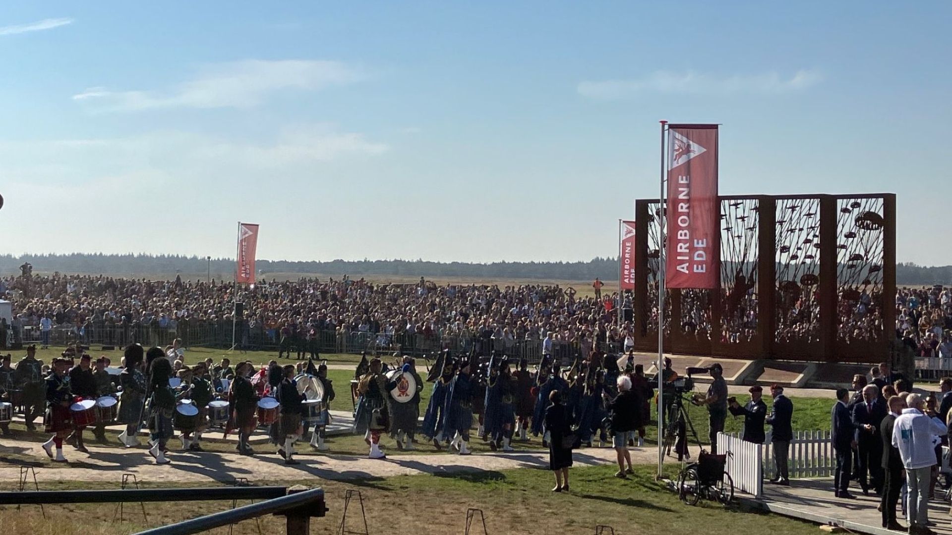 Pegasus Pipes and Drums tijdens de Airborneherdenking op de Ginkelse Heide in 2024