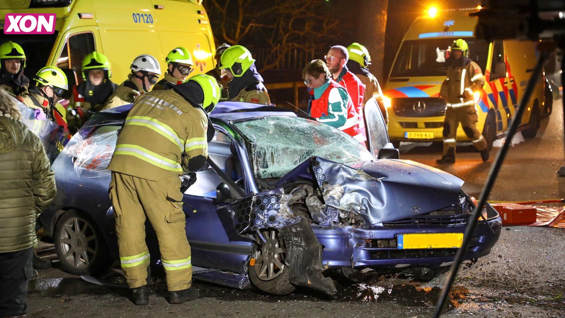 Drie ambulances en de brandweer werden met een traumahelikopter opgeroepen. Van de auto van de persoon die bekneld zat werd het dak verwijderd.
