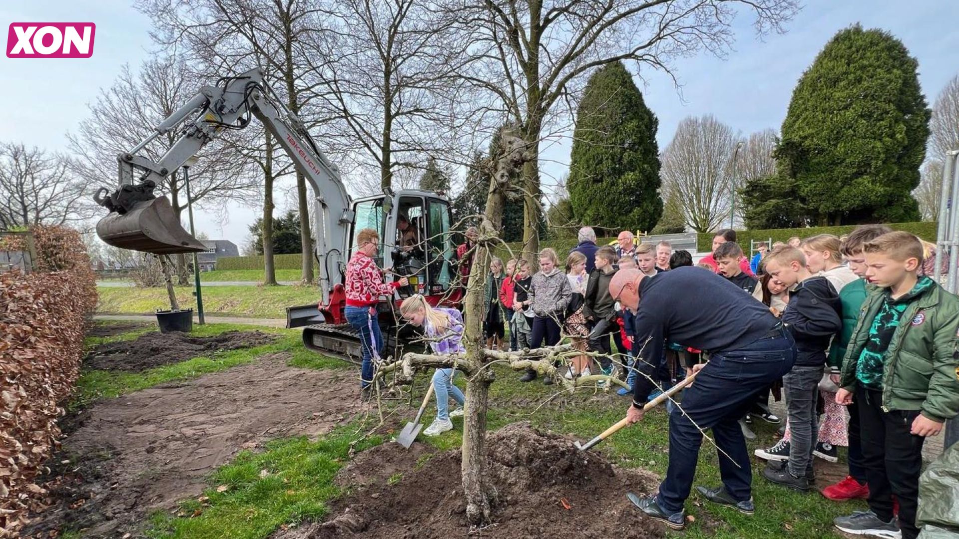 Ook de Renswoudense klimaatburgemeester was bij het boomfeest aanwezig. De fruitbomen staan op Oude Holleweg/Spikhorst tegenover de begraafplaats. De twee burgemeesters onthulden ook informatiepanelen die de leerlingen van groepen 6 van de basisscholen eerder die week hadden gemaakt.
