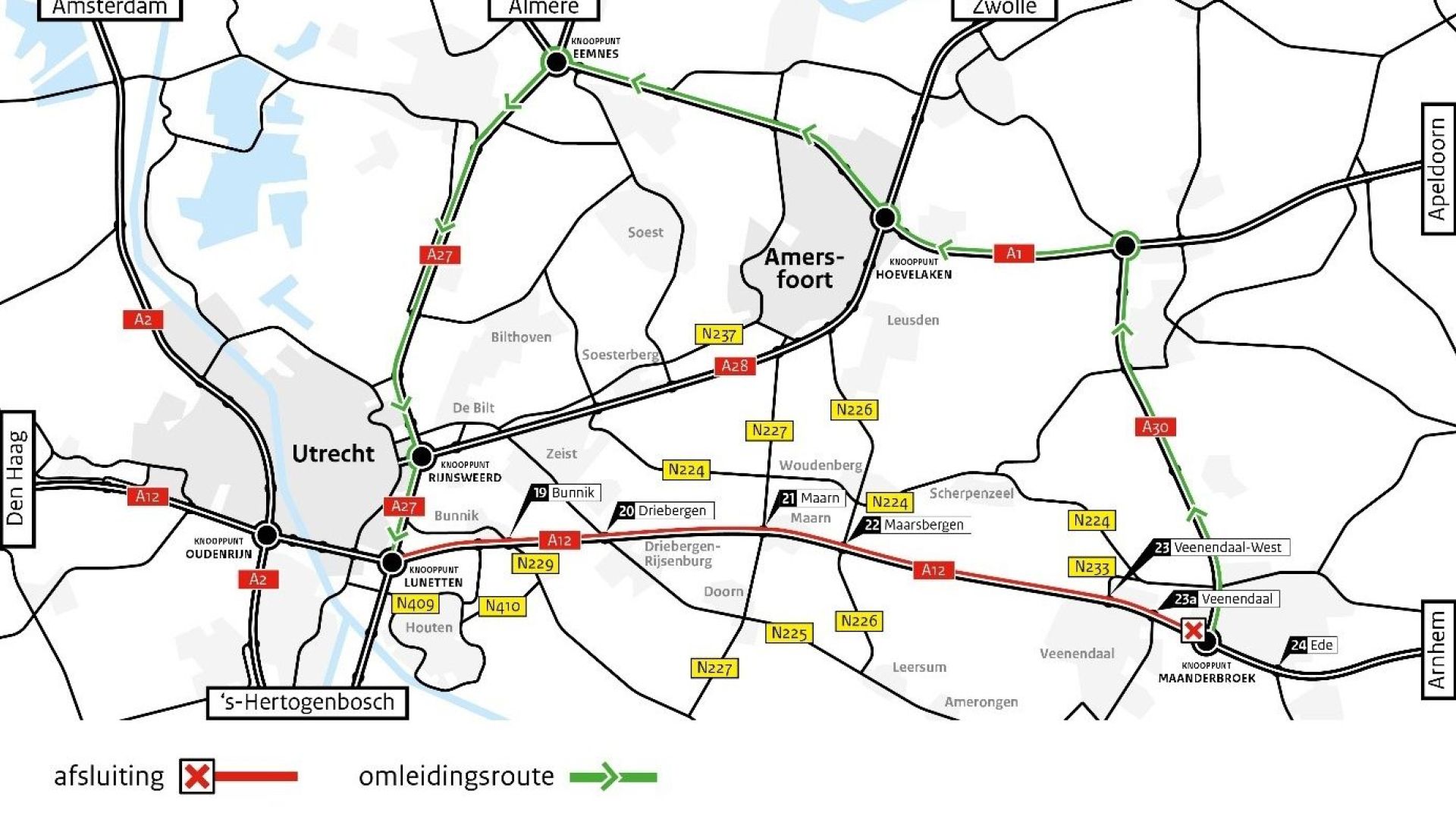 Weggebruikers moeten daardoor rekening houden met een extra reistijd van meer dan een uur. Het advies is om je reis op tijd te plannen. werk of blijf thuis als dit mogelijk is of kies voor de trein of de fiets. De werkzaamheden vinden plaats van Vrijdag 9 mei 20.00 uur tot en met maandag 19 mei 05.00 uur en vanaf vrijdag 22 augustus 20.00 uur tot en met maandag 1 september 05.00 uur. Voor de andere kant, de richting van Utrecht naar Veenendaal wordt nog gewerkt aan de definitieve planning. Die wordt dus later bekend.
