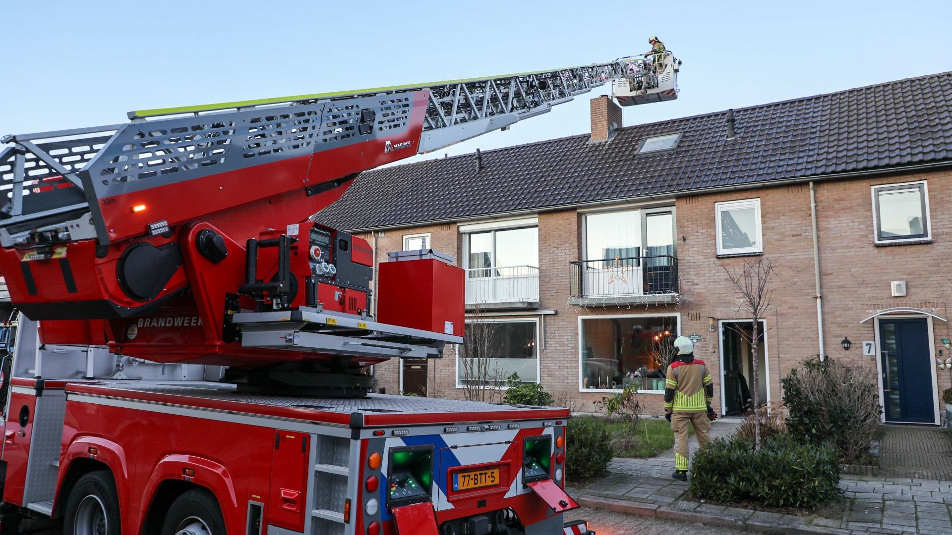 De brandweer in actie met de ladderwagen