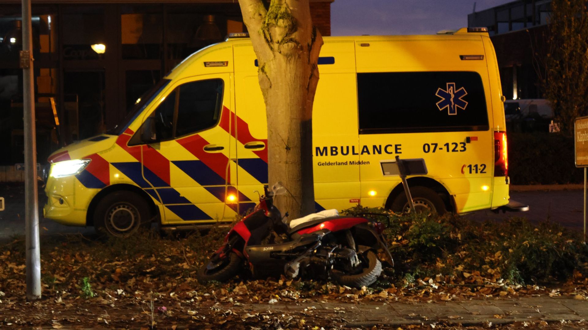 De scooter zelf raakte flink beschadigd. De auto liep lichte schade op. De politie was nog een tijd ter plaatse om getuigenverklaringen op te nemen.
