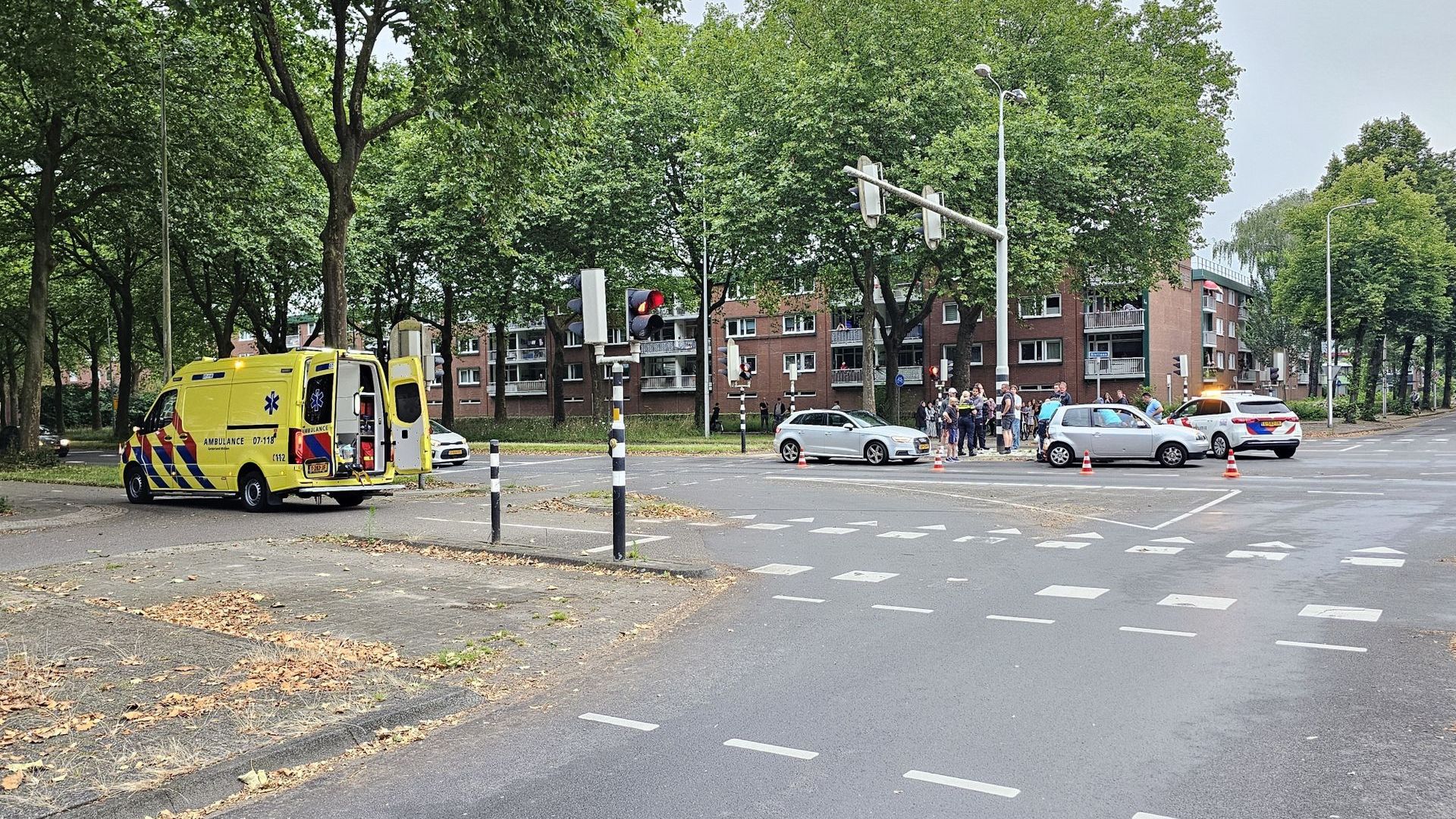 Een berger heeft de beschadigde auto weggesleept. Politieagenten hebben geassisteerd bij de afhandeling van het ongeluk.