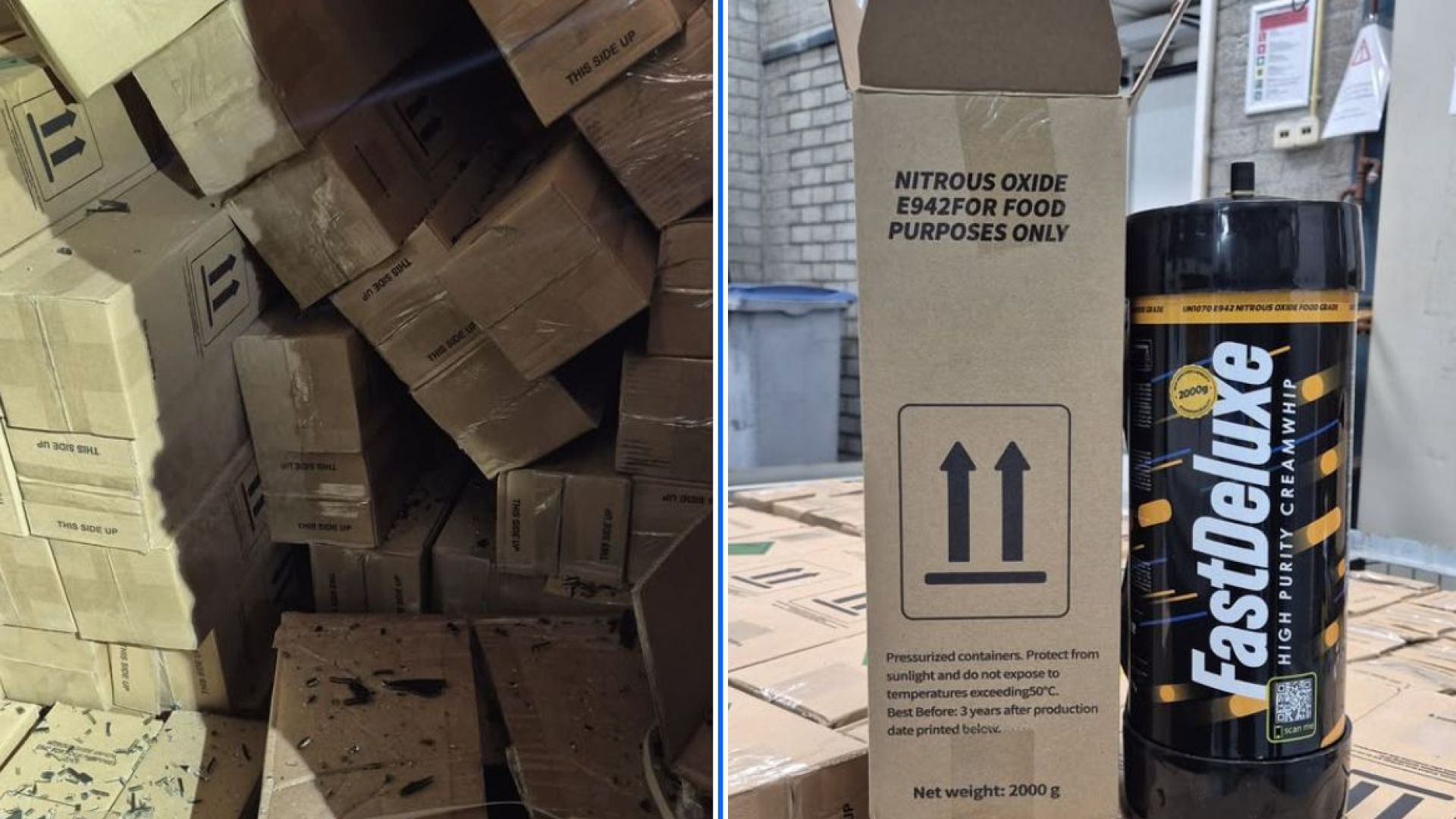 Er zijn diverse gevaren bij de opslag en het vervoer van lachgas: zo kunnen de cilinders ontploffen bij hitte, brand of een ongeval. Daarnaast is het gebruik van lachgas erg schadelijk voor de gezondheid en kan het leiden tot zuurstof te kort in de hersenen, zenuwschade, verlamming en psychische klachten. Daarom is het in Nederland verboden om lachgas te vervoeren, te verkopen, te produceren of in bezit te hebben.