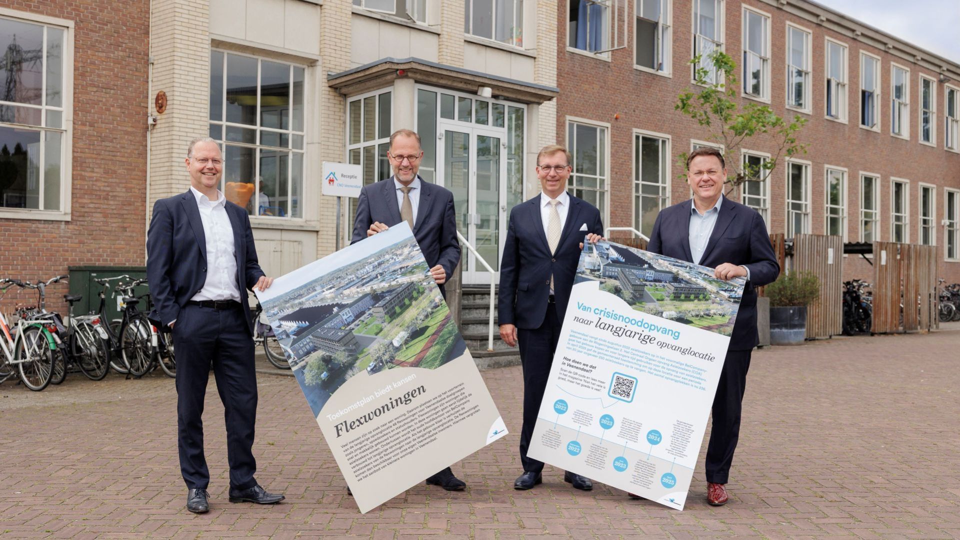 Milo Schoenmaker, voorzitter van het bestuur van het Centraal Orgaan opvang asielzoekers (COA), en burgemeester Gert-Jan Kats van de gemeente Veenendaal tekenden de bestuursovereenkomst voor de langjarige opvanglocatie. Het is een stap in de richting van de realisatie van circa 250 opvangplekken voor asielzoekers en 48 flexwoningen voor jongeren, spoedzoekers en statushouders.