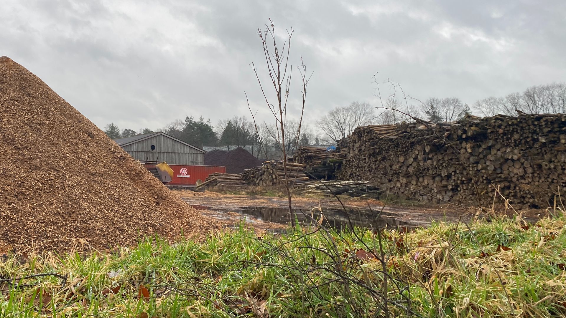 Op het terrein in de bossen bij Eerbeek liggen enorme stapels boomstammen, klaar om versnipperd te worden. Het is er een drukte van belang, vrachtwagens rijden er af en aan. Het hout dat er ligt, gaat onder meer naar biomassacentrales in Nederland, en ook direct de Edese ovens in. Die ovens verwarmen 20.000 huizen en bedrijven in Ede.