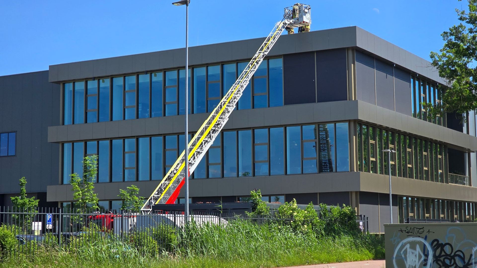 Persbureau Heitink meldt dat zo’n 50 medewerkers het pand hebben verlaten. De brand is vermoedelijk ontstaan door kortsluiting.