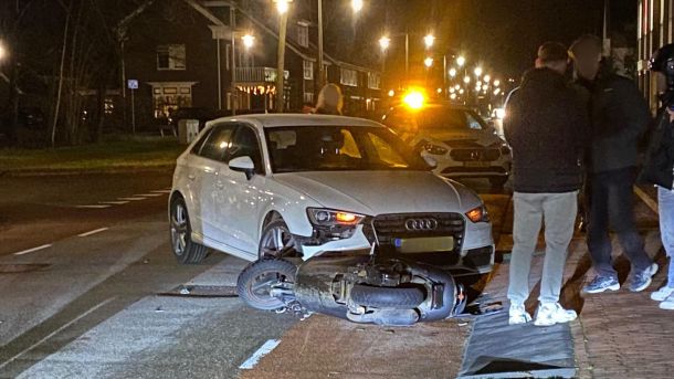 Op de kruising van de Stakenberg met de Braamberg in Ede zijn donderdag vroeg in de avond een auto en een scooterrijder in botsing gekomen.